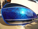 実はこれ、下地のキャンディーブルーはそのままにエンブレムを外して、筆記体で塗装しなおし、クリアでコーティングしてあります。3枚目は塗装前です。